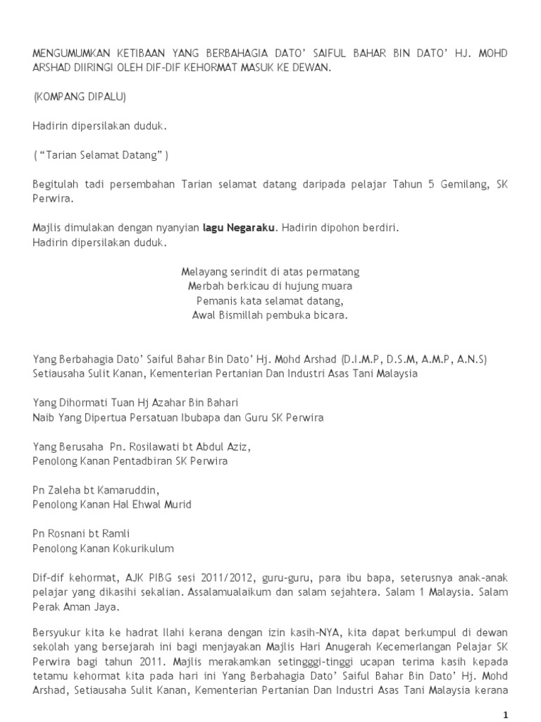 Teks ucapan pengacara majlis hari anugerah. Smk dato mohd taha peringkat sekolah. Disini admin nak kongsikan bahan tersebut. C menatap langkahmu f meratapi kisah hidupmu c terlihat jelas bahwa hatimu f anugerah terindah c yang pernah kumiliki. Mengumumkan ketibaan en mohd yanin bin zaini, pegawai pelajaran daerahlahad datu.yang dihormati en mohd yanin bin zaini, yang berbahagia en.